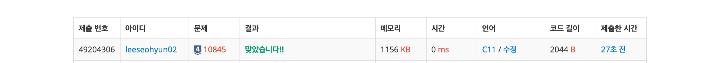 ASCII 코드 기준으로 두 문자열이 같을 때 : return 0;