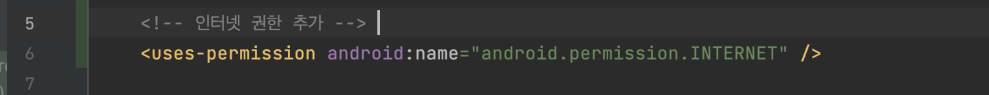 매니페스트 파일에 인터넷 권한도 추가합니다.