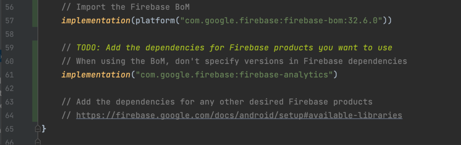 // https://firebase.google.com/docs/android/setup#available-libraries