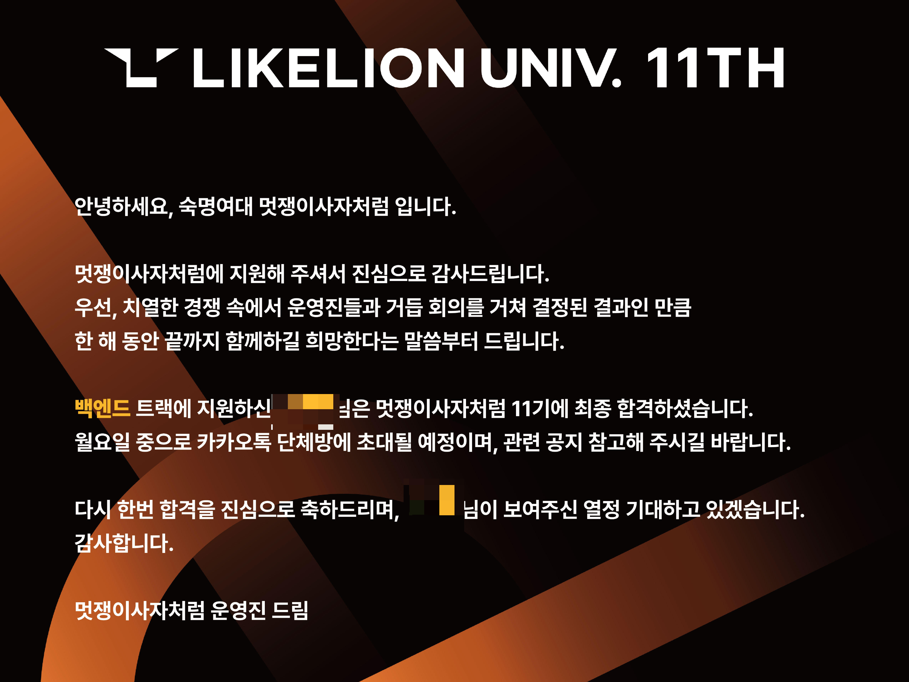 1년 동안 아기사자로 활동하면서 처음으로 해커톤도 나가보고, 다양하고 정말 깊은 백엔드 지식을 쌓을 수 있었습니다